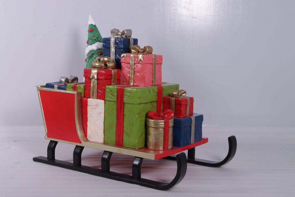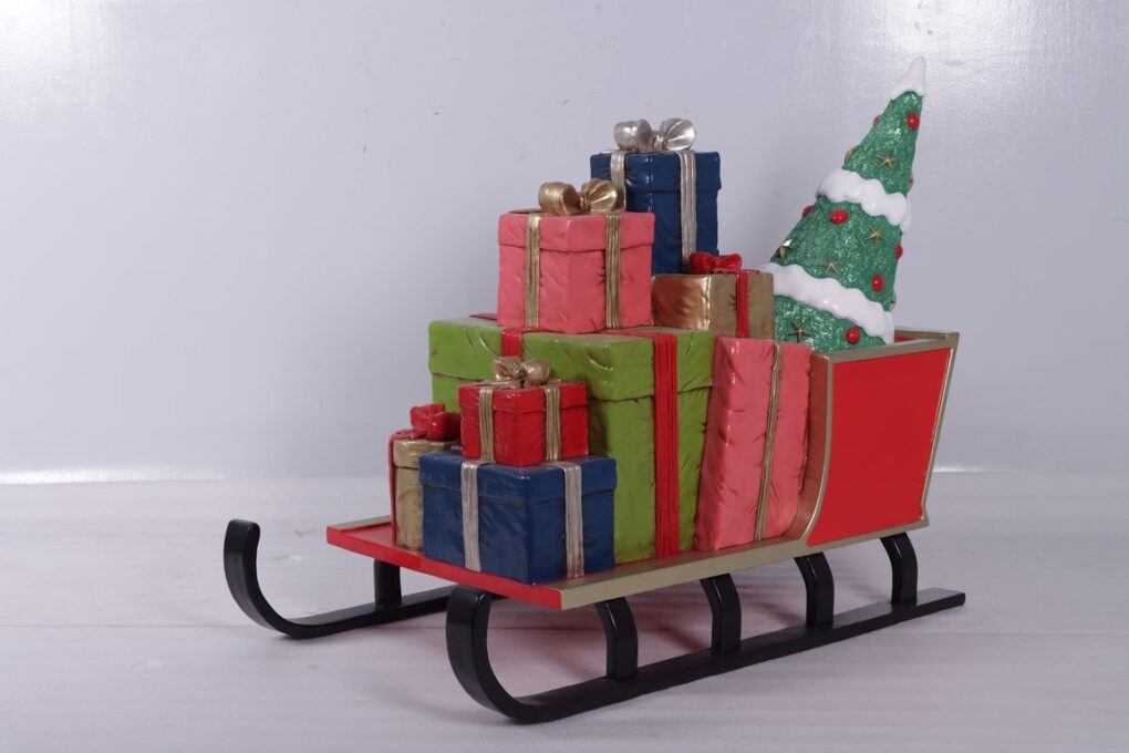 This open sleigh model, is a festive treasure trove piled high with beautifully wrapped boxed gifts and a charming little Christmas tree. Its classic design and generous size make it a standout piece for holiday displays, perfect for shop windows, winter wonderland setups, or seasonal event décor. Use it as a captivating focal point alongside other festive figures or decorate it with fairy lights and garlands to draw customers’ attention and inspire gift-giving spirit. This sleigh is sure to enhance any Christmas scene and drive festive sales.